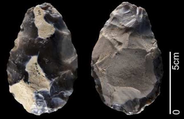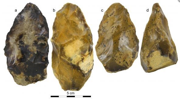 De fait, la présence des bifaces acheuléens évolués signale l'arrivée des Homo heidelbergensis en Europe, provenant des H. rhodesiensis d'Afrique, en même temps que la présence de foyers et traces du feu.