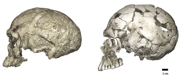 Le crâne globuleux est daté de 135.000 ans (6) mais présente des anomalies/malformations anatomiques qui perturbent son interprétation.