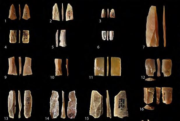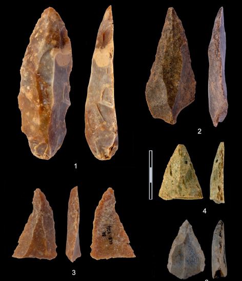 Par ailleurs, cette couche contenait une remarquable industrie faite de très petites pointes (parfois d'un cm) bien standardisées, et très distinctes de l'outillage moustérien présent ailleurs sur le site.